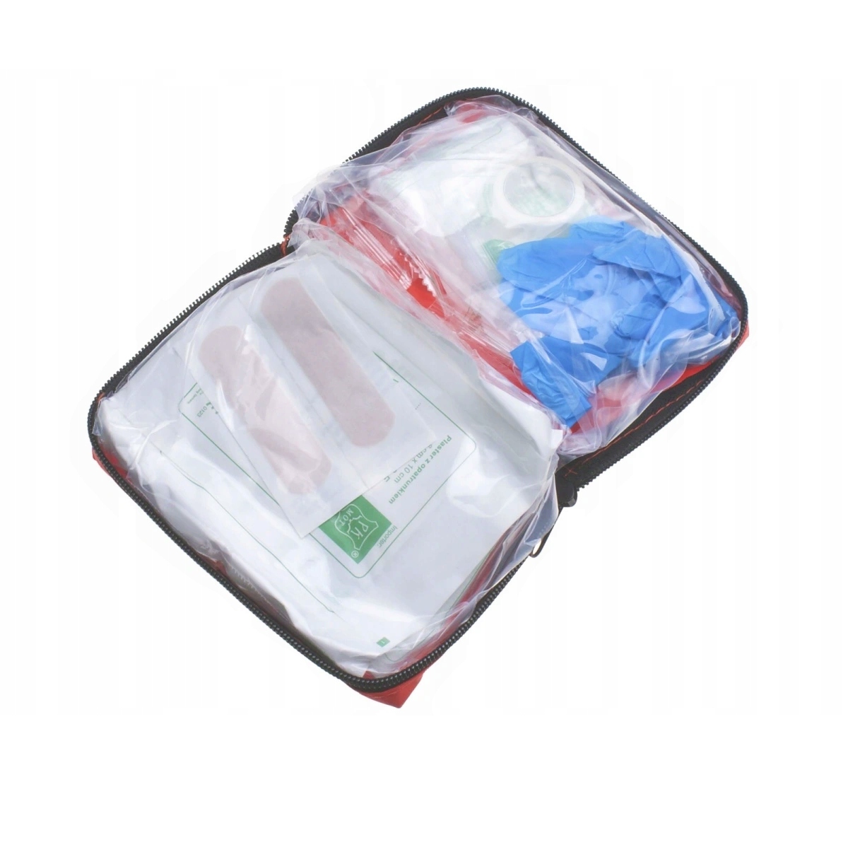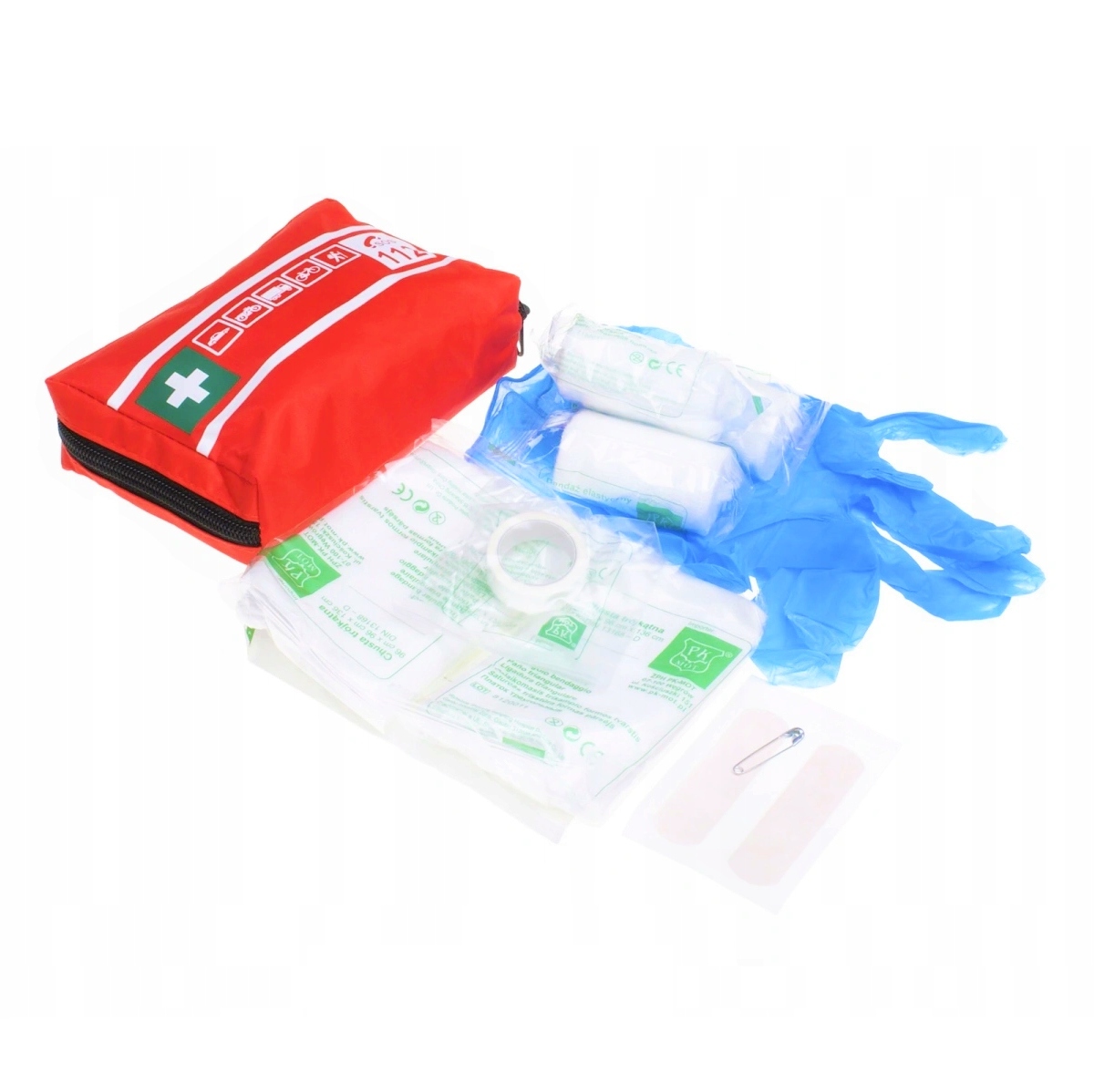 | Wyposażenie | agrafki, bandaż elastyczy, chusta trójkątna, instrukcja udzielania pierwszej pomocy, kompres na rany, plastry, plastry z opatrunkiem, przylepiec, rękawice jednorazowe |