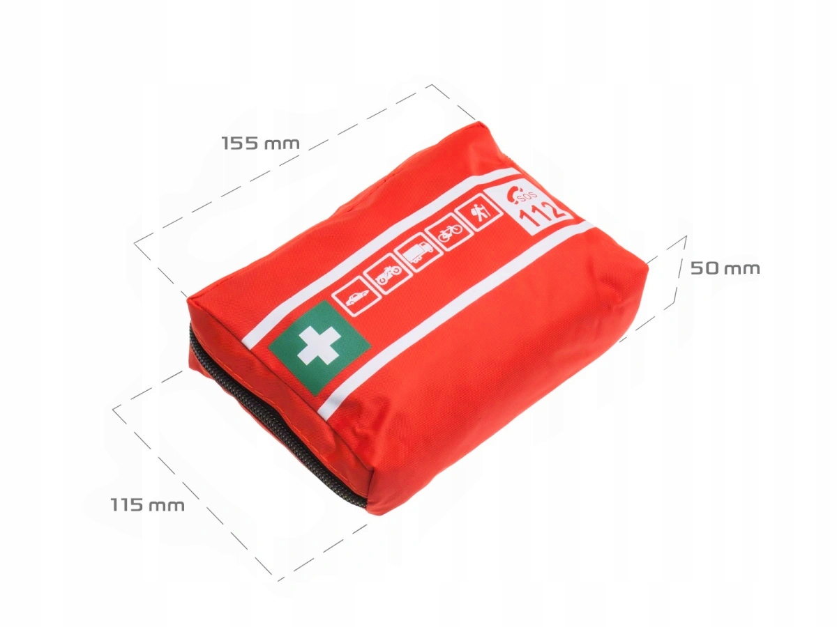 ⚠️ Apteczka pierwszej pomocy w materiałowym opakowaniu wykonanym z wodoodpornej tkaniny. Z tyłu pokrowca znajdują się uchwyty umożliwiające montaż apteczki w dowolnym miejscu.