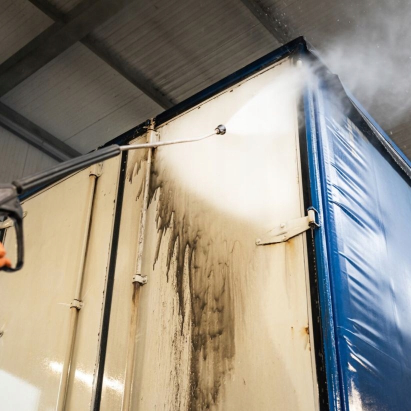 ➡️ rozcieńczyć od 1:30 do 1:100. Natryskiwać roztwór na suchą powierzchnię i pozostawić na krótki okres przed spłukaniem przy użyciu natrysku wysokociśnieniowego