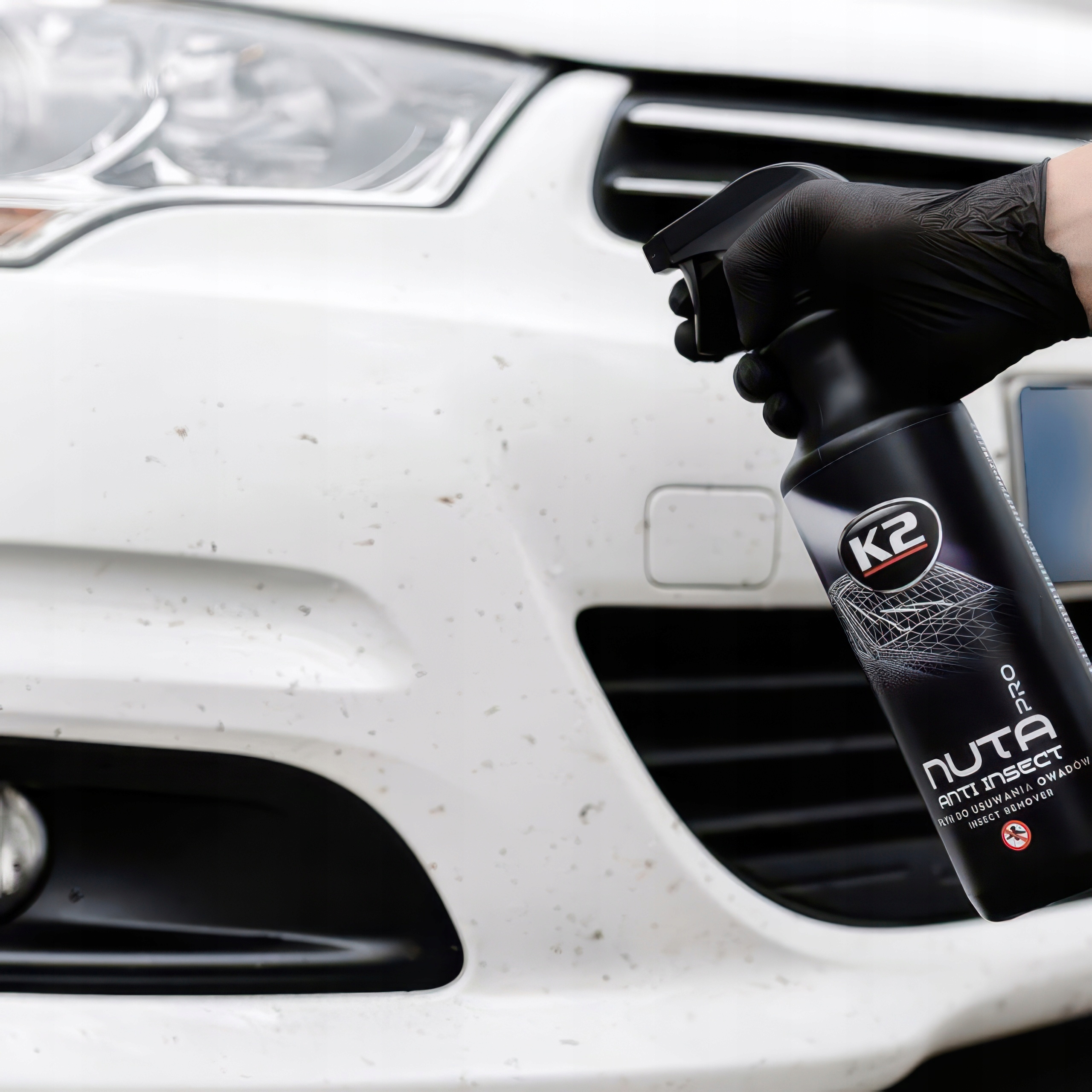 K2 NUTA Anti Insect PRO to profesjonalny, bezpieczny i gotowy do użycia środek do usuwania resztek owadów z powierzchni lakieru samochodowego, zderzaków, lusterek oraz reflektorów. Idealnie sprawdza się jako płyn do usuwania owadów z szyb. Zaprojektowany tak, aby wydać i wygrać wojnę z tysiącami owadzich pozostałości, które szpecą wygląd auta.