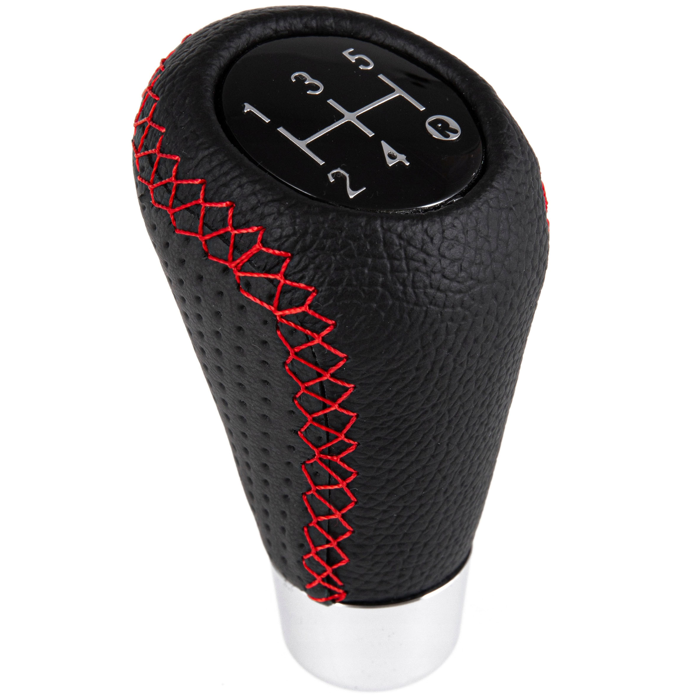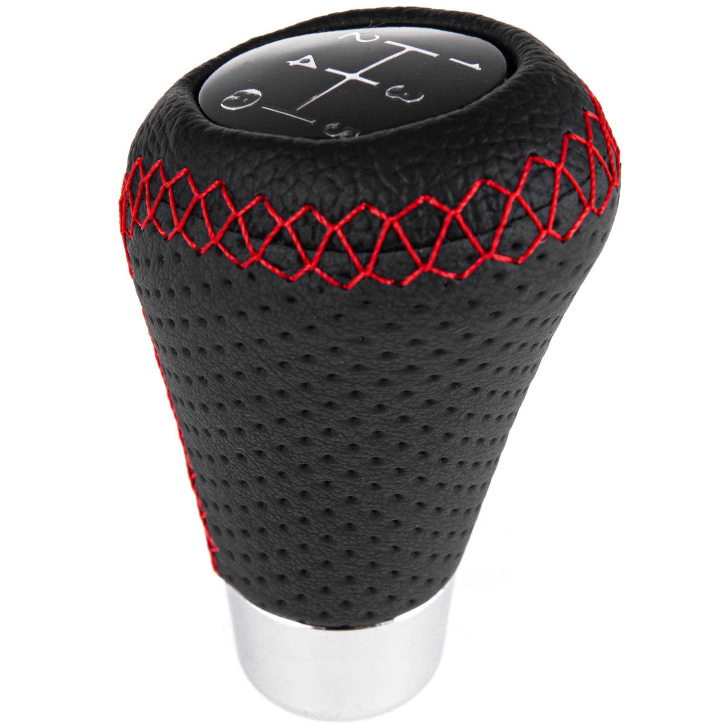 UNIWERSALNA GAŁKA DŹWIGNIA ZMIANY BIEGÓW TUNING SKÓRA 5 BIEGÓW CZERWONA NIĆ – zamiennik
